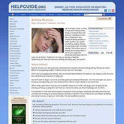 Bulimia Nervosa Signs, Symptoms, Treatment, and Help People with bulimia are extremely concerned with their weight, yet they can’t fight the compulsion to binge. ... Fetch This Document